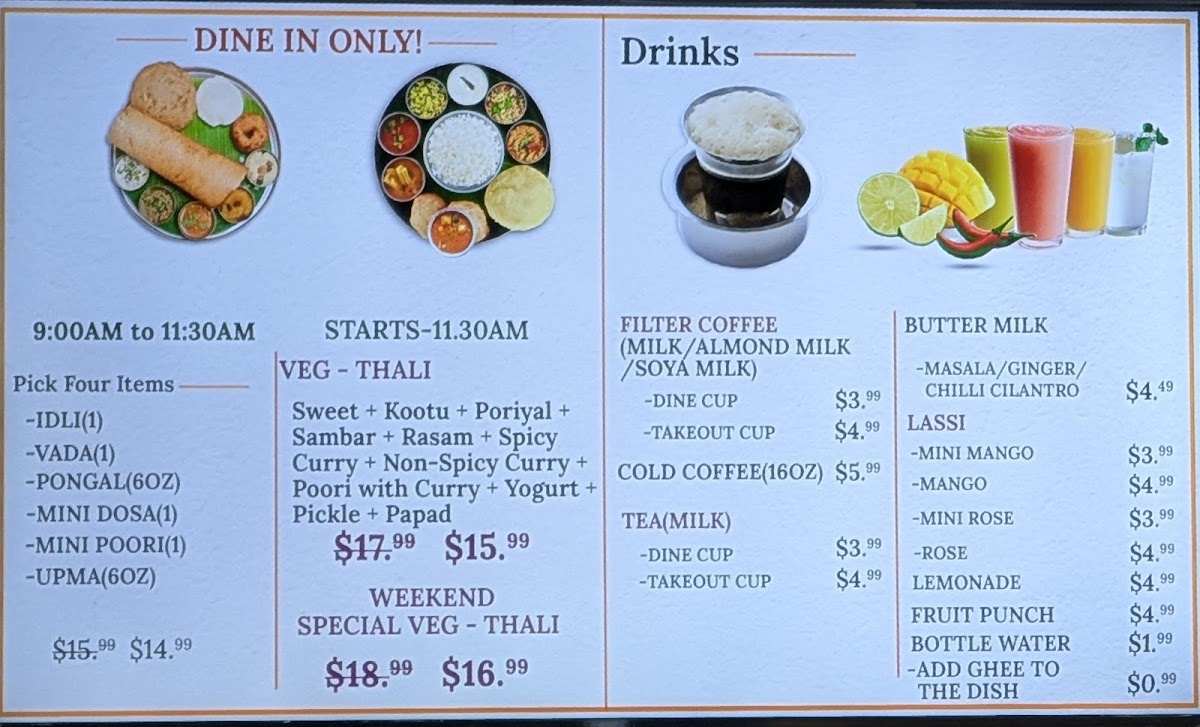 As you step inside, you're greeted by a spacious and inviting ambiance, perfect for family gatherings or a cozy dinner date. Our commitment to quality and tradition shines through in every dish we serve. Customers rave about our flavorful offerings, from the aromatic masala dosa to the delightful gobi Manchurian. Each meal feels like a warm embrace, reminiscent of home-cooked meals.
